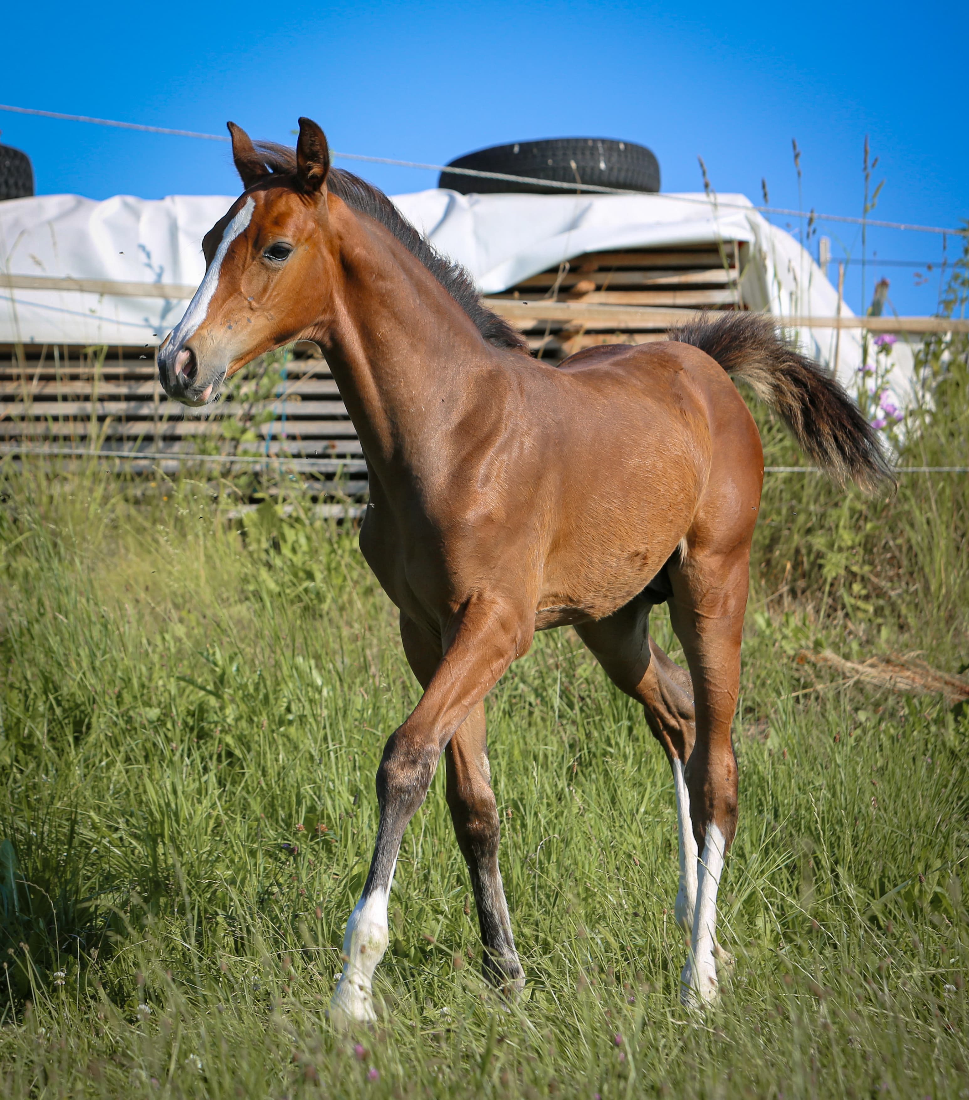 Super schickes buntes Hengstfohlen. Ausgestattet mit toller Galoppade und ehrlichen menschenbezogenem Charakter.